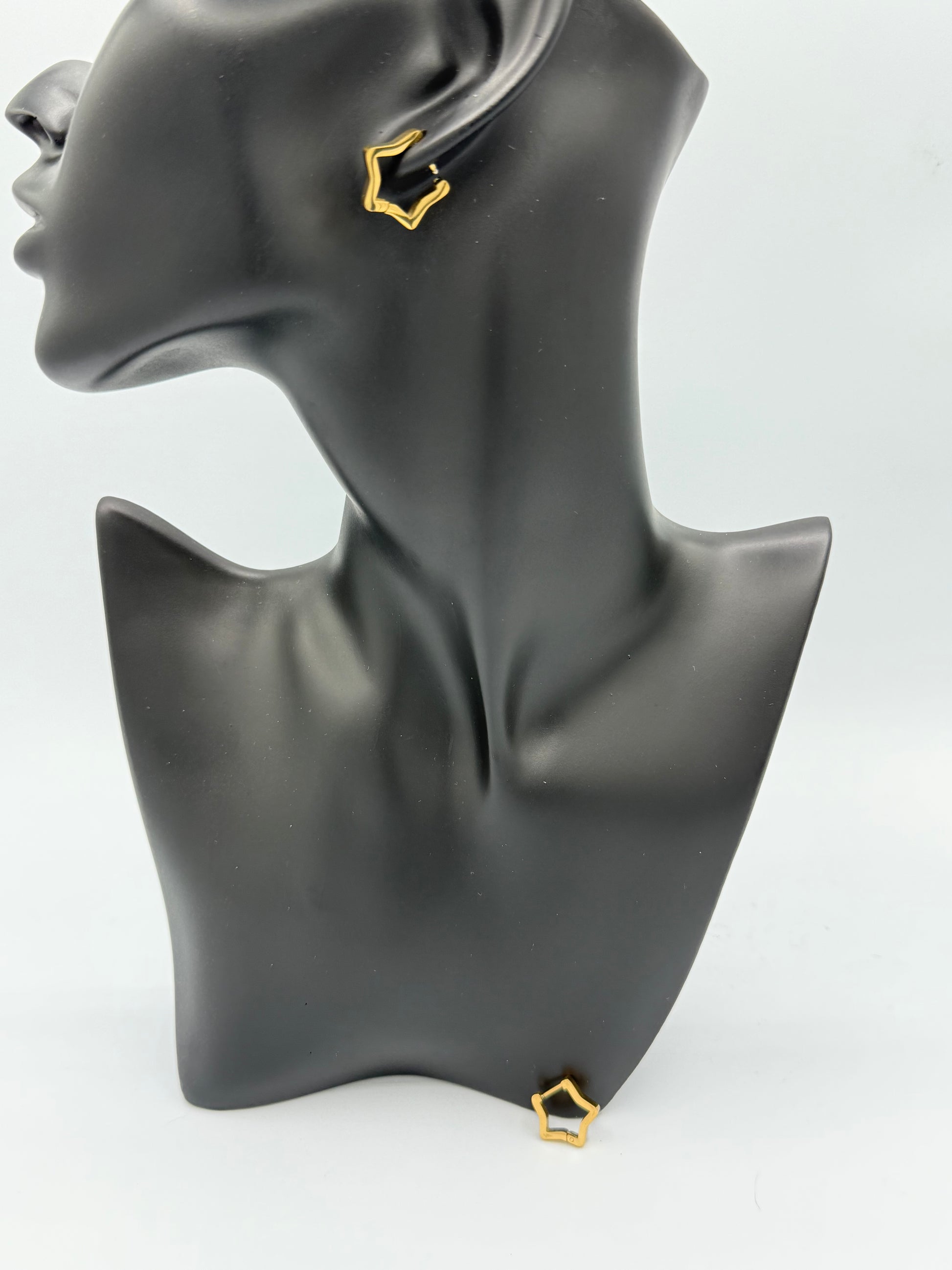 Make a subtle yet striking statement with the Golden Star Hoop Earrings. Crafted from stainless steel with a radiant gold-tone finish, these minimal yet bold star-shaped hoops are designed to elevate any look—from casual chic to evening glam. Their lightweight design makes them perfect for everyday wear, while the unique shape adds a playful twist to classic hoops.